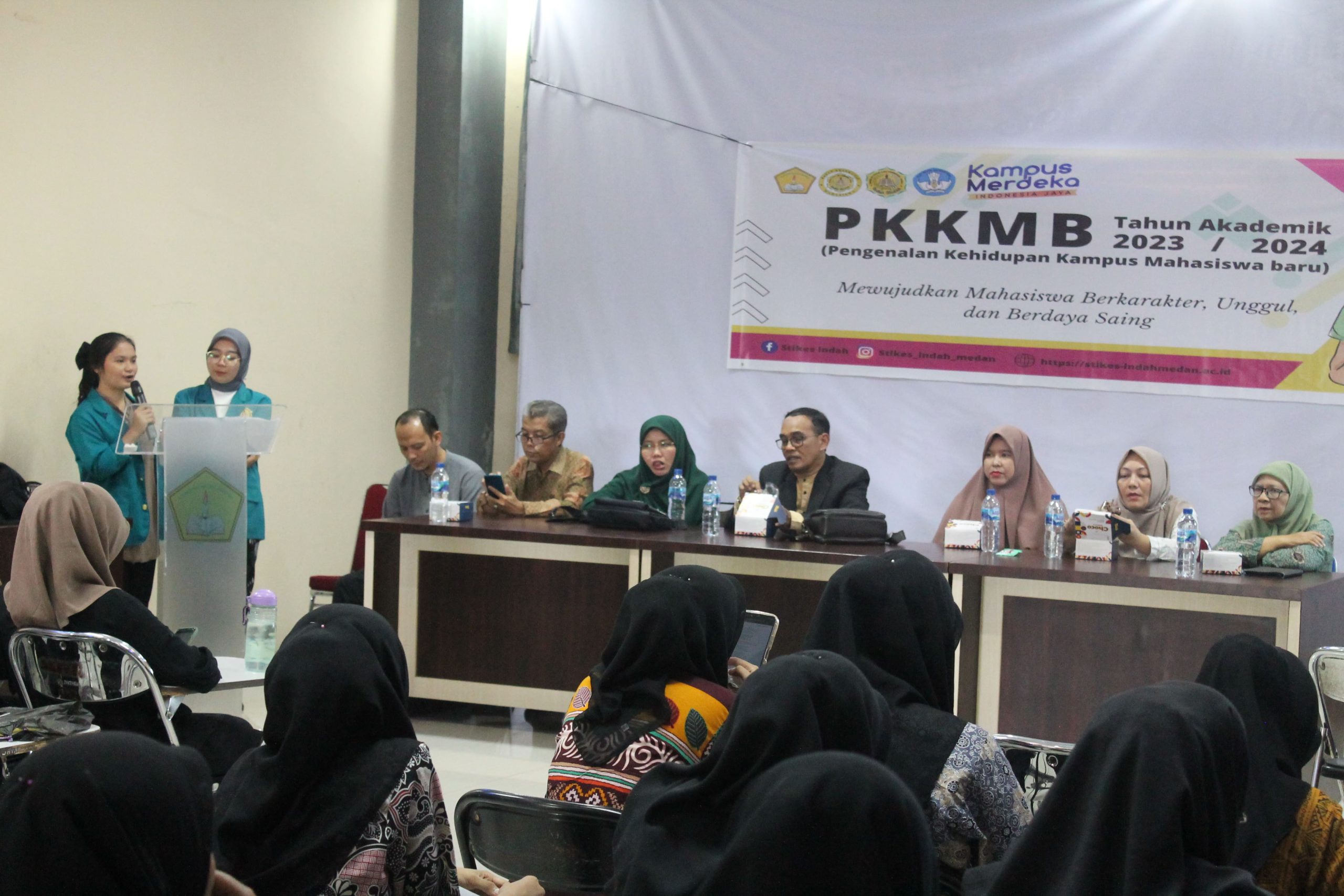Senin (18/09/2023) Mahasiswa baru Sekolah Tinggi Ilmu Kesehatan Indah Medan (STIKes Indah Medan) mengikuti Pengenalan Kehidupan Kampus bagi Mahasiswa Baru (PKKMB) Tahun Akademik 2023/2024 di Aula STIKes Indah Medan.